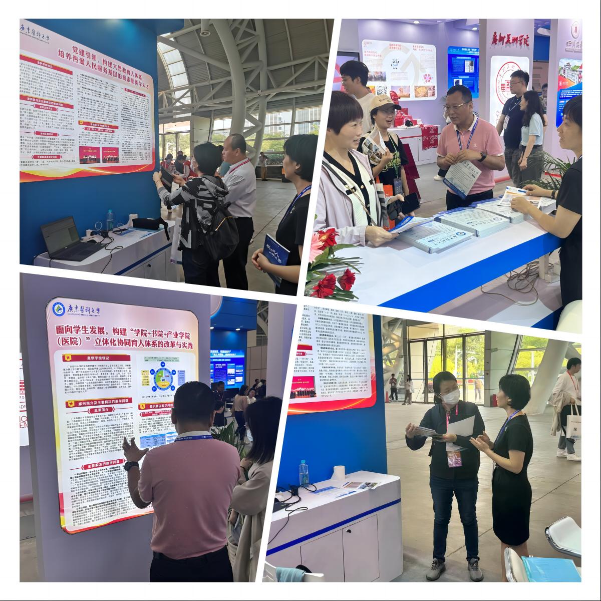在成果展专区,新葡萄采用图文并茂、视频播放等的方式,全方位展现了学校在高质量人才培养等方面取得的特色亮点,一是党建引领,构建大思政育人体系,培养热爱人民服务基层的高素质医学人才,二是面向学生发展,构建“学院+书院+产业学院(医院)”立体化协同育人体系的改革与实践。展览期间,各高校、企业及相关领域从业人员参观新葡萄展位,认真观看展示内容和资料,并对新葡萄本科人才培养的特色给予了充分肯定。展出内容吸引了众多参会人员到展位进行深入交流,搭建了一个良好的交流合作平台。