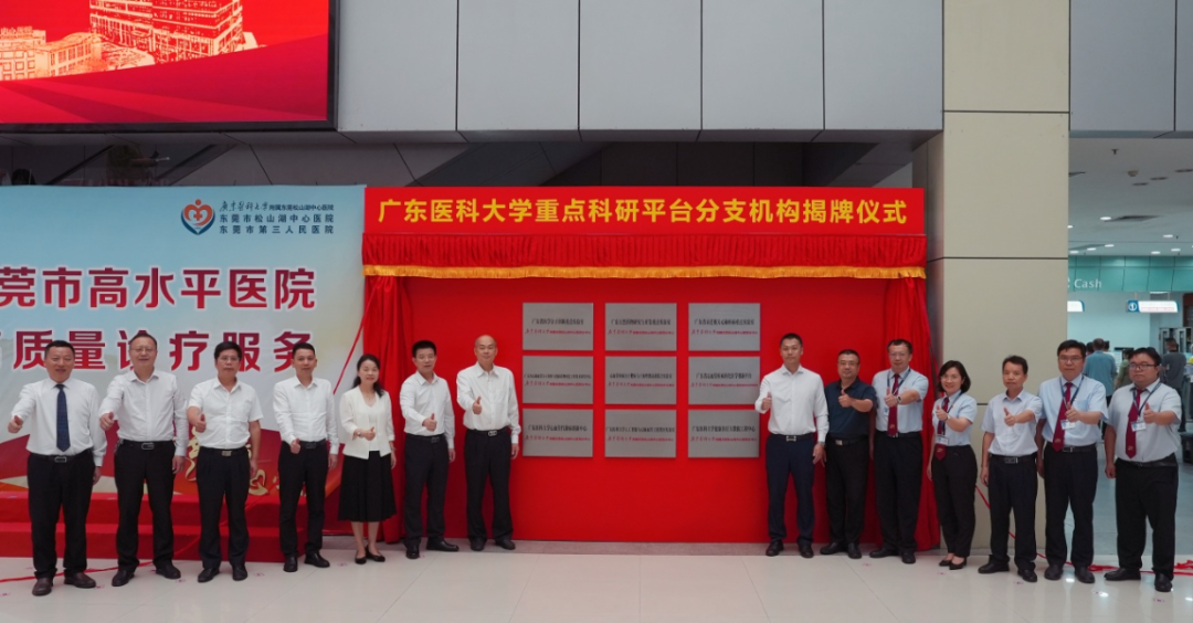 在各位领导们的共同见证下,新葡萄8883官网AMG重点科研平台分支机构举行了揭牌仪式。九个分支机构的揭牌,标志着医院与高校科研合作的进一步深化,开启医院高质量发展的新篇章。双方将共同创建东莞市研究型医院,打造高水平医学教育、医学科研、医学转化中心,建成本、硕、博一体化的人才培养体系。并通过发挥新葡萄8883官网AMG在人才、平台、科创等方面的优势,推动东莞市松山湖中心医院打造成为临床水平更精湛、科创能力更强大、服务声誉更响亮的东莞市高水平医院,为市民群众提供更高水准、更加优越、更具特色的医疗服务。