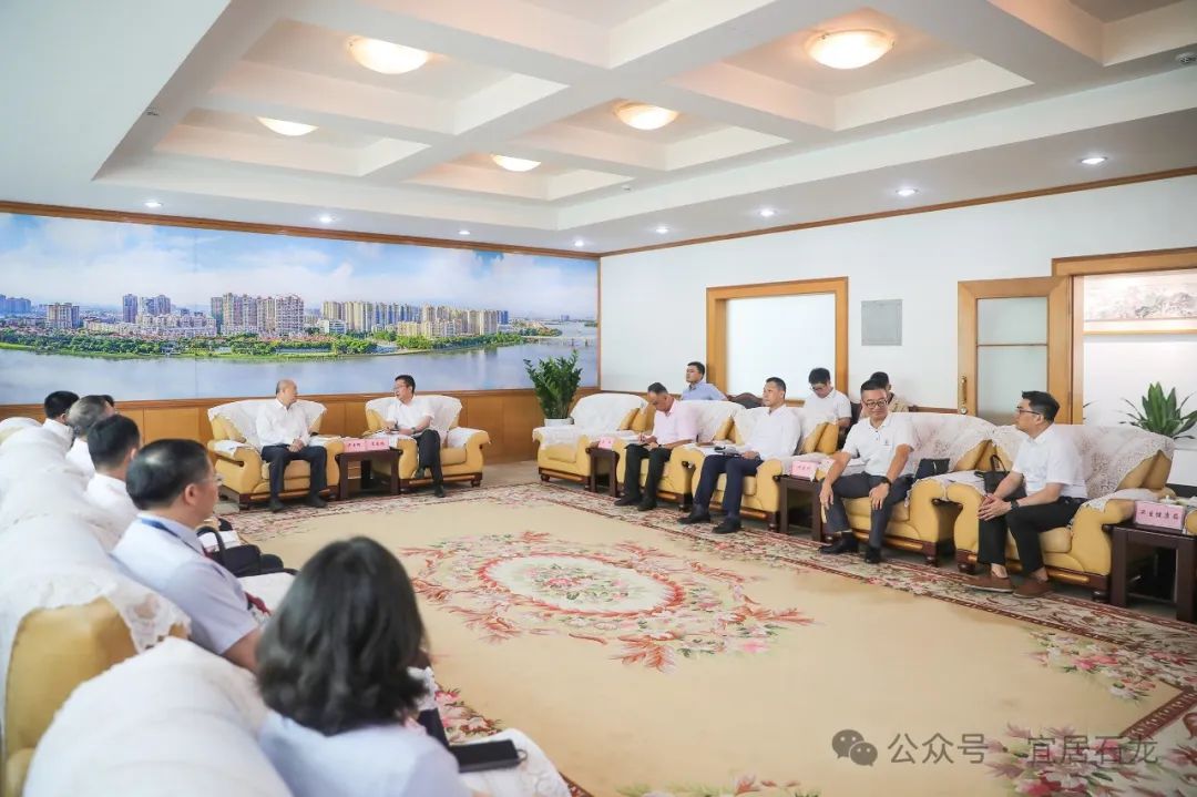 卢景辉书记校长一行还到石龙镇政府座谈交流。座谈会上,石龙镇党委书记李亚鹏代表镇党委、镇政府对新葡萄8883官网AMG一行的到来表示欢迎,并介绍了石龙镇的经济社会发展情况。他表示,石龙镇向来重视医院的建设和发展,希望借助新葡萄8883官网AMG的优势,助力东莞市松山湖中心医院提升技术能力、科研水平和综合实力。同时,东莞市松山湖中心医院要把握机遇、乘势而上,加快提升临床、科研、教学等方面的水平,为石龙乃至东莞医疗卫生事业作出更大贡献。此外,李亚鹏还希望新葡萄8883官网AMG能立足石龙镇的区位优势、产业优势,与石龙在更多领域加强交流,携手推进更多合作项目落地,实现共赢发展。