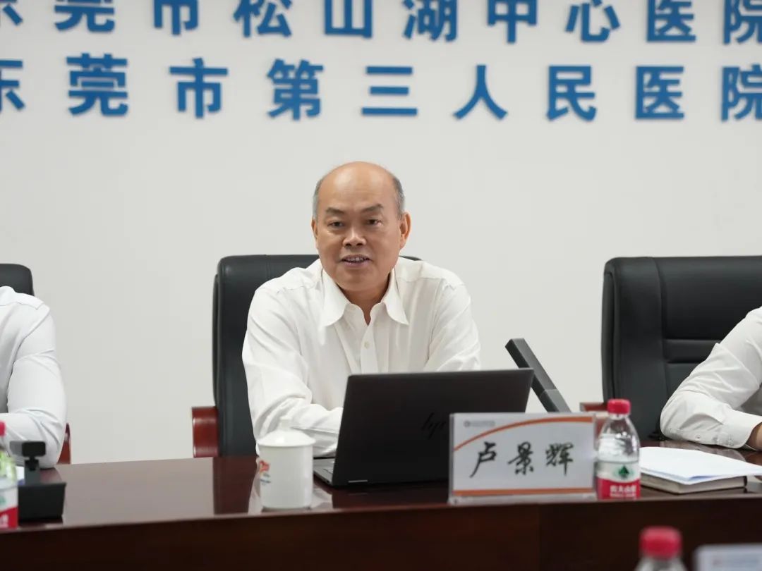 卢景辉书记校长提出四点要求:一是要营造干事创业的环境条件。党的领导坚强有力,班子精神面貌积极,医院发展目标清晰,发展战略切合实际,医疗进步持续加快,基础底子越来越坚实,支撑地方经济社会发展的能力越来越强,这些优势为医院持续快速发展、创建高水平大学直属附属医院奠定了良好的基础。二是医院领导班子及干部要深入学习贯彻党的二十大精神,贯彻落实党委领导下的院长负责制,坚持抓好医院党的建设和思想政治工作,特别是政治建设,思想建设,组织建设,作风建设及纪律建设。大学附属医院必须加强师德师风和医德医风建设,切实抓好党建学习教育,开展廉政廉洁建设。三是作为大学的直属附属医院,一定要坚持医教研更高水平,更高质量齐头并进。增强发展的紧迫感,以更高的要求、更有力的举措推进内涵建设,加大人才引进力度。同时,要加强品牌打造宣传,不断优化医院内部治理和管理体系。四是大学各有关部门要全力支持服务附属东莞松山湖中心医院的发展建设,推进医院实现更快更高更好的发展。大学要始终秉承“立志立德、求真求精”“艰苦奋斗、自强不息”的精神,勇挑“兴医强医、守护健康”“立德树人、为党育人”的使命,在各级管理工作中,必须坚持以师生发展为中心,以学科建设为中心,以人才强校为要务,以社会服务为己任,以党的领导为根本。