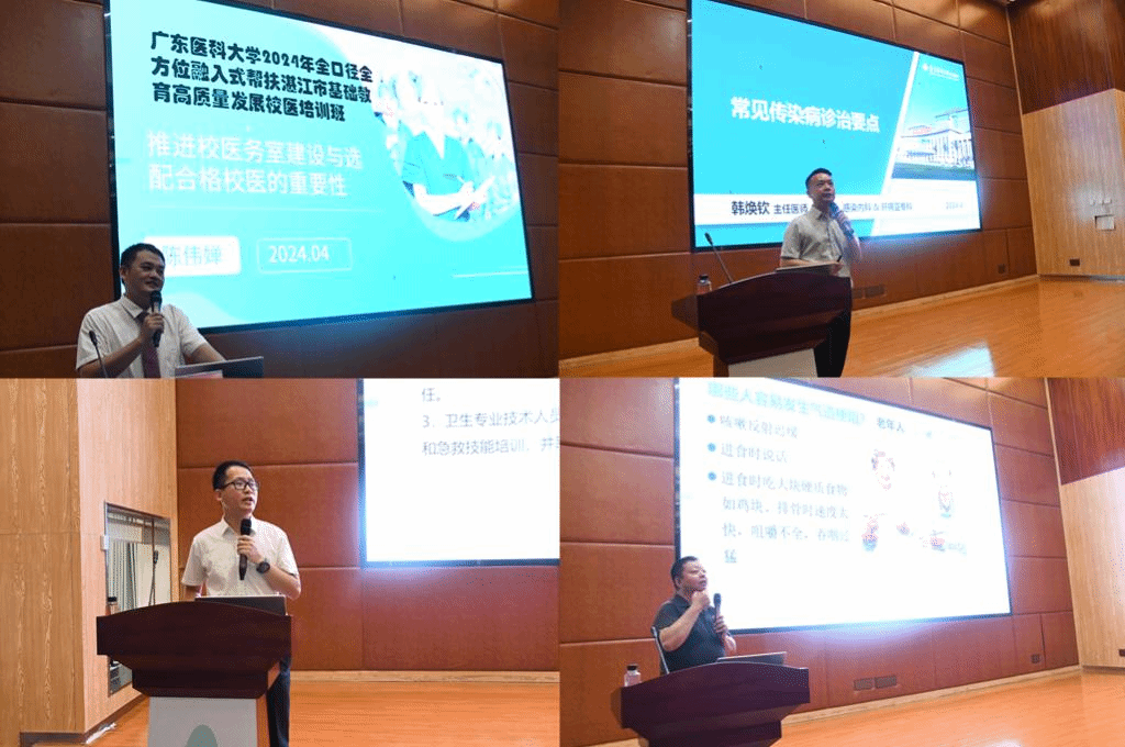 2024年4月26日上午,新葡萄8883官网AMG2024年全口径全方位融入式帮扶湛江市基础教育高质量发展校医培训在新葡萄8883官网AMG附属医院全科医生培养基地开班,来自湛江市各县、区中小学校的80名校医参加培训。湛江市教师发展中心副主任、湛江市教育研究院副院长蔡茂青出席开班仪式。培训由继续教育学院统筹,附属医院承办。