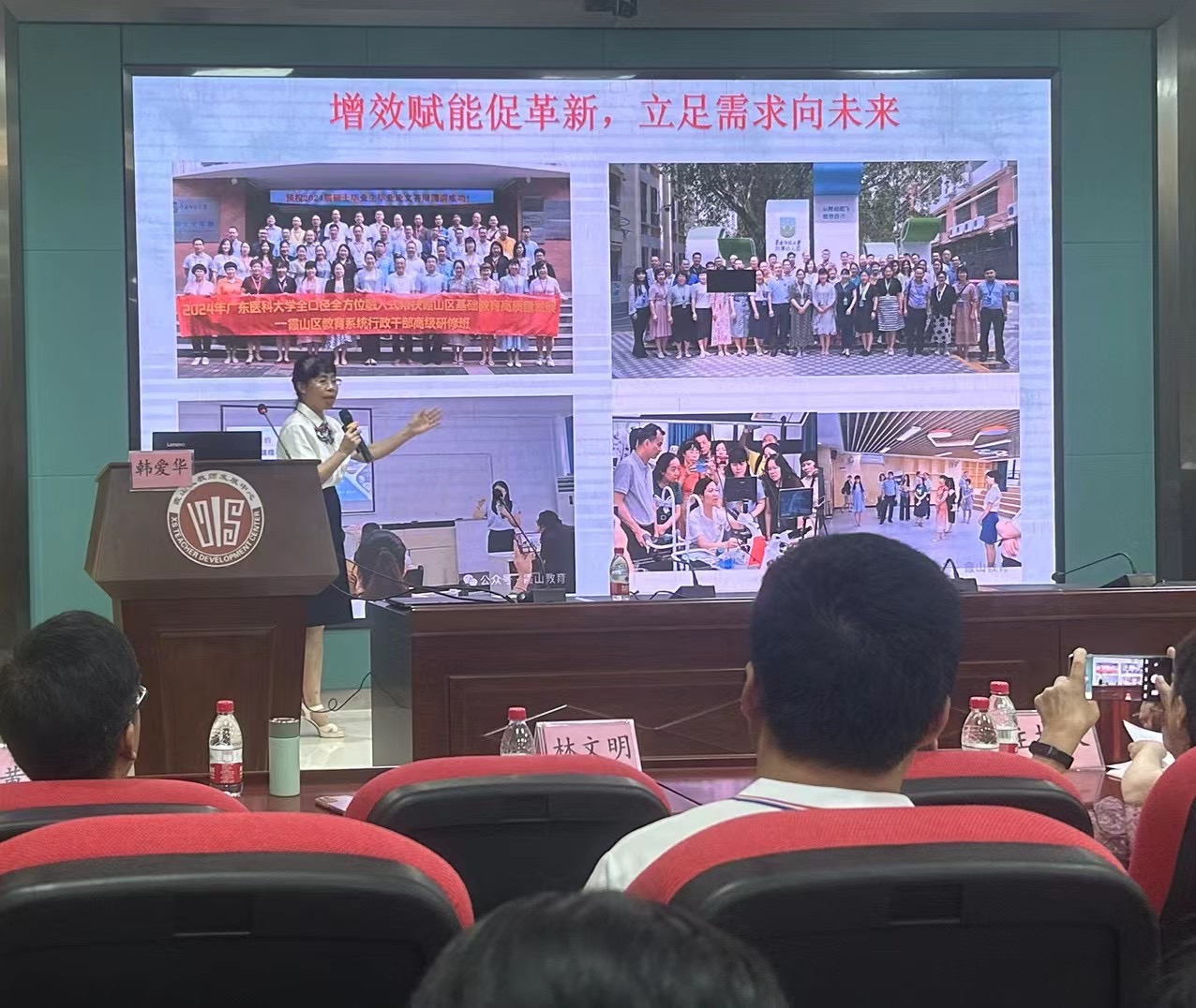 5月6日-5月11日,新葡萄8883官网AMG全口径全方位融入式帮扶霞山区基础教育高质量发展——霞山区行政系统干部高级研修班在华南师范大学顺利举行,为巩固和提升学习效果,5月17日下午,霞山区成功举办了霞山区第十二期基础教育高质量发展大讲坛,旨在通过分享和交流学习心得,推动霞山区基础教育事业迈向新的高度。本次培训活动由霞山区教师发展中心黄颖主任主持,霞山区教育局党组成员、副局长沈慧,区教师发展中心全体干部,区属学校(幼儿园)领导班子,校区主任和民办幼儿园园长代表等约160人参加了培训。