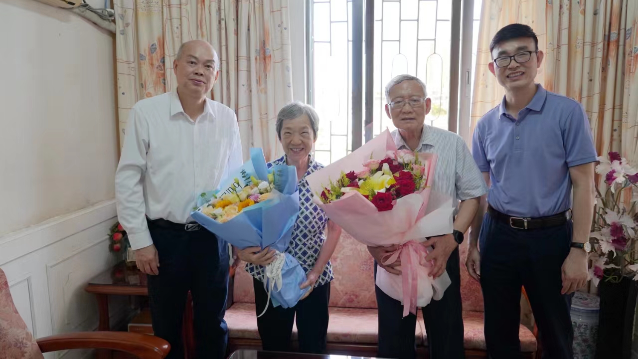 在中国共产党成立103周年之际,6月30日下午,学校党委书记、校长卢景辉和党委副书记黄达海带队慰问老党员、患病党员、老干部代表,为党龄50年的老党员颁发“光荣在党50年”纪念章,送上鲜花和慰问金,聆听老党员们讲述年轻时艰苦奋斗、自强不息参与投身学校建设等奋斗故事,送去党的温暖和关怀,并代表学校党委向全校党员致以崇高敬意和亲切问候。