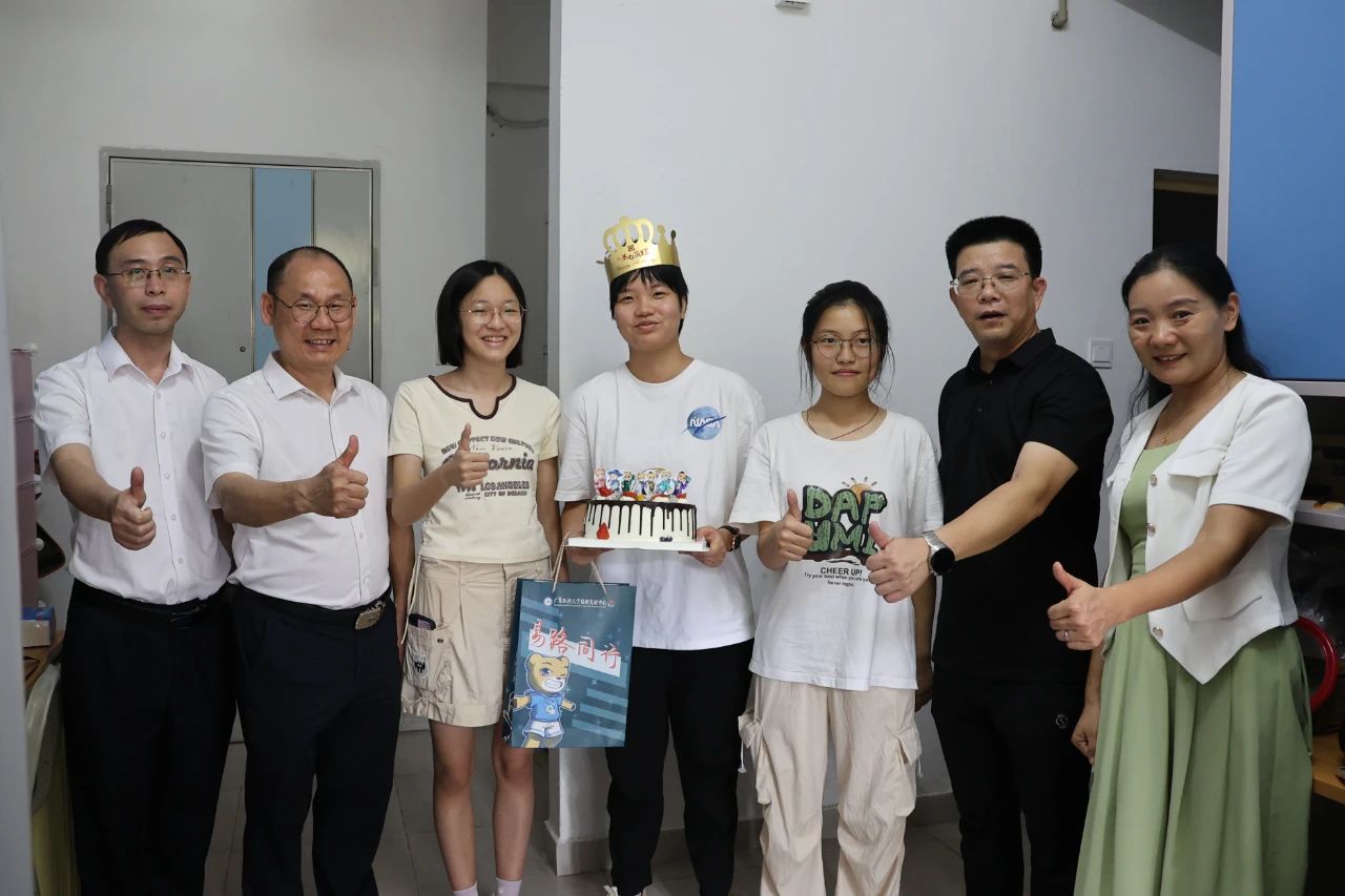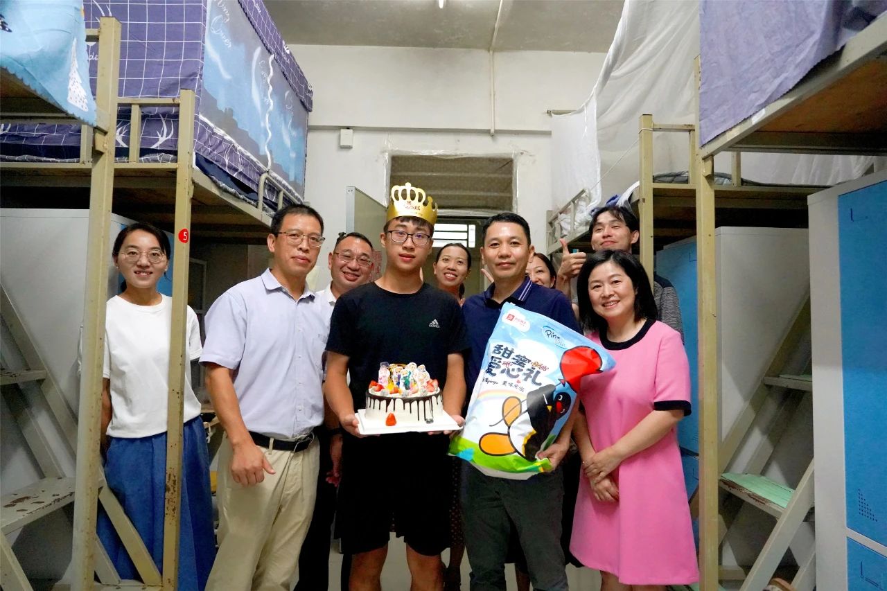 学校领导走访新生宿舍和他们拉家常并为今天生日的同学们送上蛋糕学校党委书记、校长卢景辉亲切地说:“要珍惜大学时光,也要注意锻炼身体。”“记得要给爸妈打电话。”