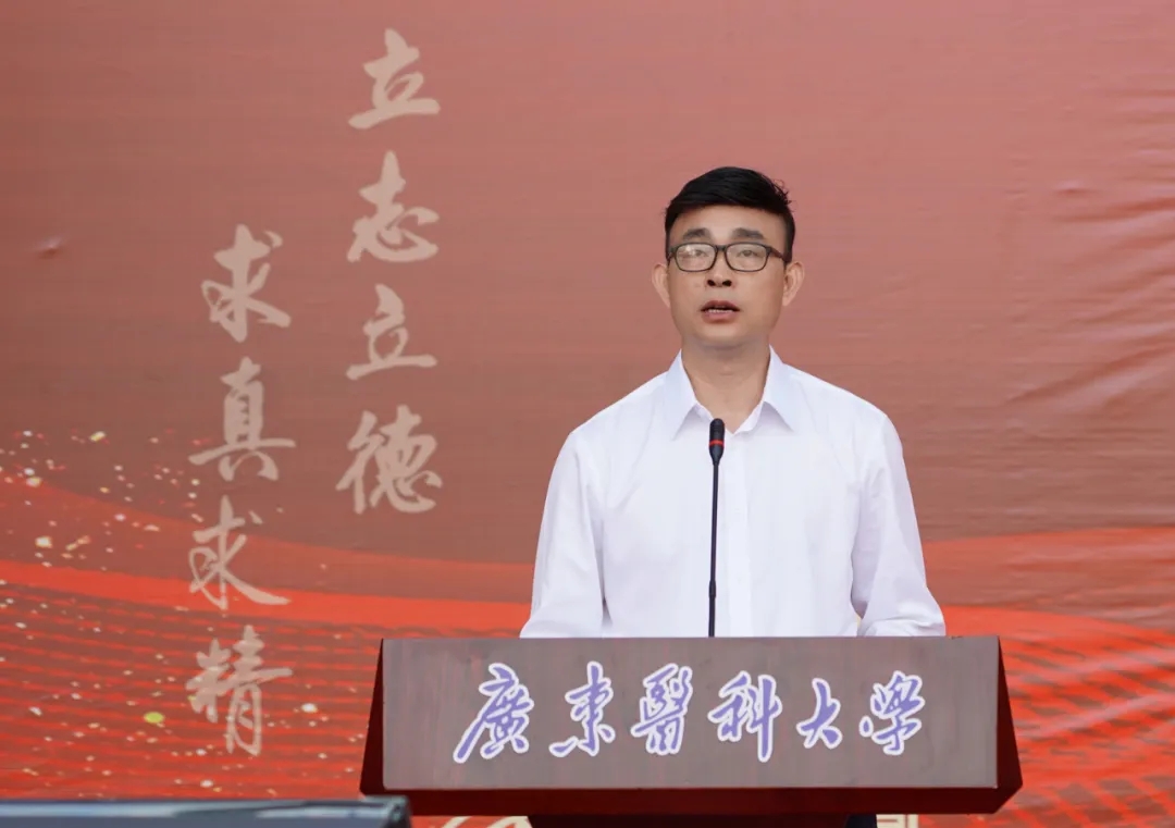 教师代表、第二临床医学院赖天文教授结合校训精神,分享了自己在广东医的成长与历练。希望同学们在未来的求学旅程中,继承和弘扬“立志立德、求真求精”“兴医强医,守护健康”之精神,胸怀理想、修身立德、锤炼才干、砥砺奋斗,为学校高质量发展添力量,为医学科学进步做贡献,主动扛起健康中国的责任担当,让青春在全面建设社会主义现代化国家新征程的火热实践中绽放绚丽之花。