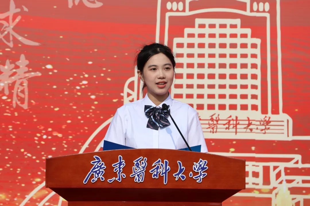 2024级本科生代表、医学技术学院眼视光学专业李培芝同学表示,作为广东医学子,要时刻践行“立志立德、求真求精”的校训,要勇担“兴医强医、守护健康”的责任使命,在推进健康中国建设,民族复兴伟业中展现青春作为、彰显青春风采、贡献青春力量。