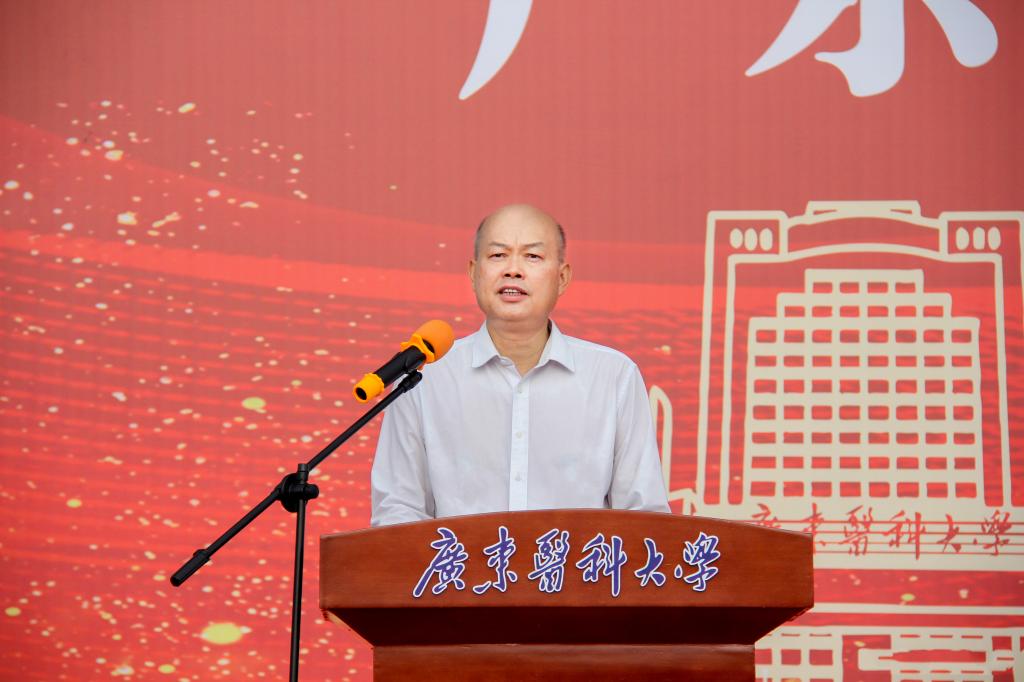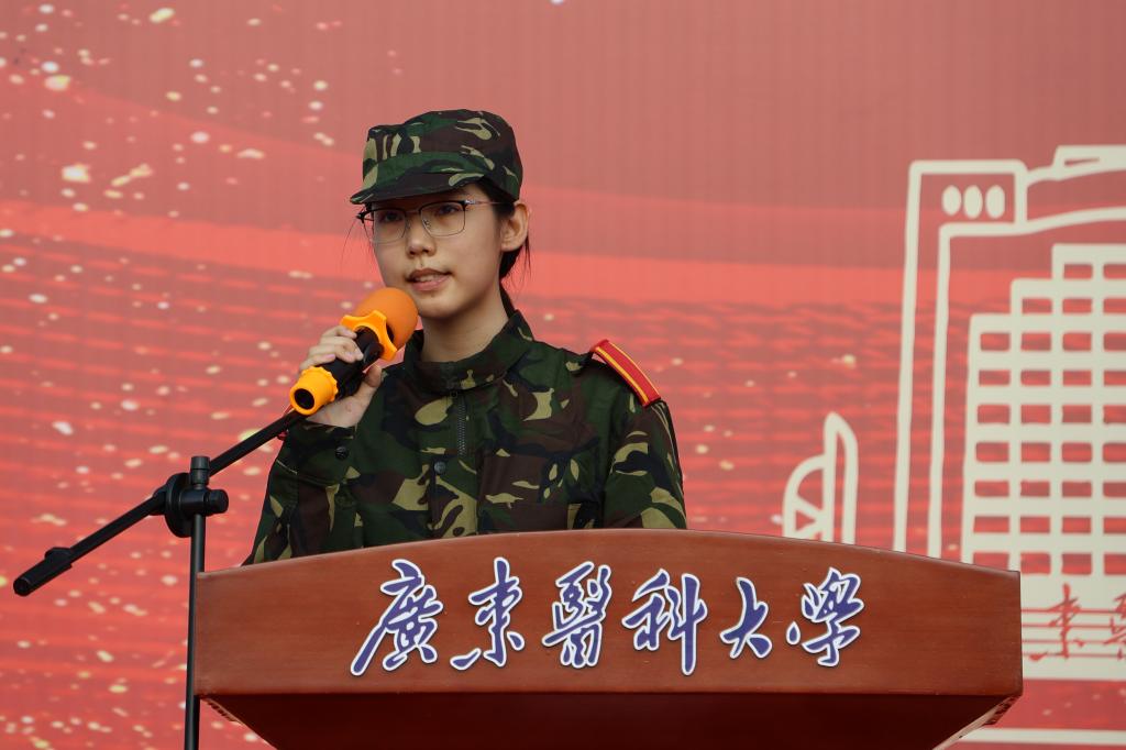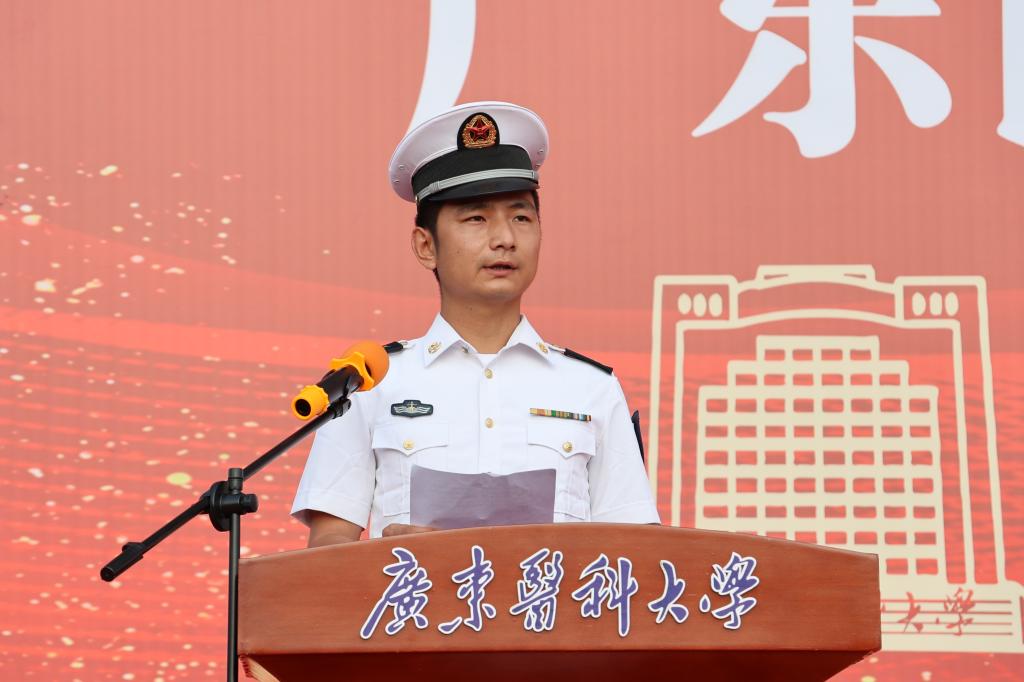 卢景辉作动员讲话。卢景辉表示,通过入学后一段时间军训,同学们不仅可以强健体魄、掌握基本军事知识和技能,也能进一步激发爱国热情,明确使命责任,锤炼坚强意志,从而以昂扬的斗志和焕然一新的精神风貌投入紧张充实的大学生活。卢景辉指出,希望同学们通过军训,练就政治坚定、思想坚强、作风坚韧的意志品质,希望同学们全身心投入军事训练,不断洗礼自我、超越自我、完善自我,用良好的精神面貌,展现广东医学子的时代风采!卢景辉强调,要提高认识、增强观念,不断提升国防意识和爱国热情;要振奋精神、勇于拼搏,时刻保持饱满的热情和高昂的斗志;要严守纪律、争当标兵,务必坚持养成良好习惯;要紧密团结,精诚合作,始终发扬集体主义精神。