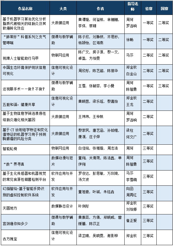 本次大赛与人工智能领域高质量发展、高层次人才培养相融相促、相得益彰,展示出优秀的成果,通过比赛促进学习和教学,为人工智能+专业的交流提供了重要的平台和机遇。新葡萄8883官网AMG积极参与到比赛并斩获佳绩,进一步提高学校学生计算机教学和信息技术与学科深度融合的水平,激发广东医学子学习计算机知识和技能的兴趣和潜能,提升学生运用信息技术解决实际问题的综合实践能力。