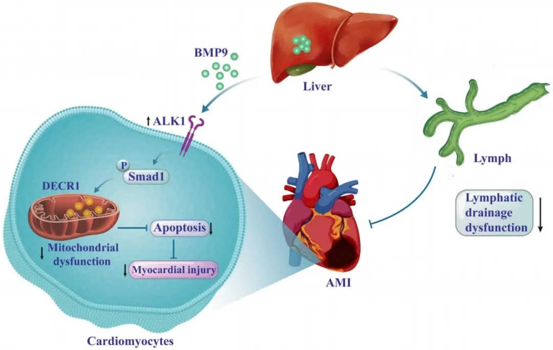 本文研究结果不仅从临床和基础角度提供了BMP9心脏保护的新证据,并进一步揭示BMP9是通过调节肝脏、淋巴和心脏之间的多器官串扰来保护心肌梗死。为MI的机制研究提供了实验理论基础,也为临床干预AMI提供了理论支撑,具有重要的研究价值和意义。