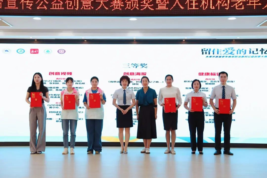 9月21日上午,东莞市首届老年痴呆防治高校公益创意大赛颁奖仪式举行,现场展播了优秀作品,宣读了老年痴呆防治宣传视频、海报和标语作品分别评选出一等奖2名,二等奖6名,三等奖18名,优秀奖60名。这些作品不仅体现了人文关怀,更是科学精神的具体体现。大家运用了现代科技手段,结合心理学、社会学等多学科知识,为老年痴呆的防治提供了新的思路和技术支持,为进一步推动全市防治科普的水平。