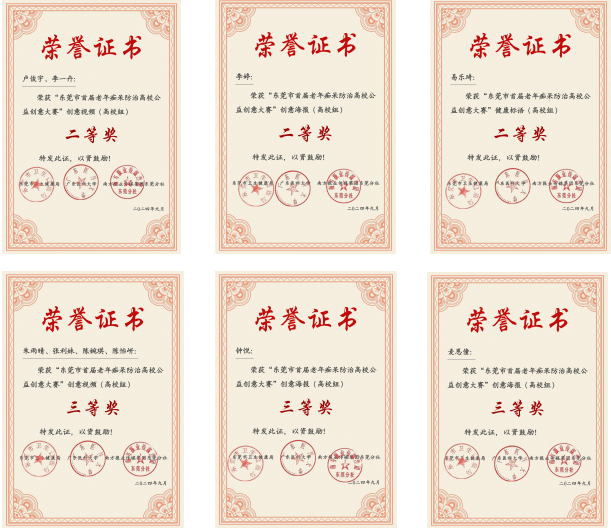 9月21日,历时4个月,东莞市首届老年痴呆防治宣传公益创意大赛由东莞市卫生健康局联合新葡萄8883官网AMG、东莞市医养健康协会、南方报业传媒集团东莞分社和多家高校共同联合举办。新葡萄获得优秀组织奖,新葡萄师生获得一等奖2项,二等奖6项,三等奖9项,优秀奖18项。