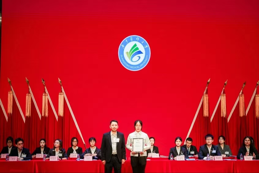 湛江团市委副书记李栩敏、学校宣传部(教师工作部)部长杨海云为学校2024年“我为同学做实事”立项服务项目授牌。