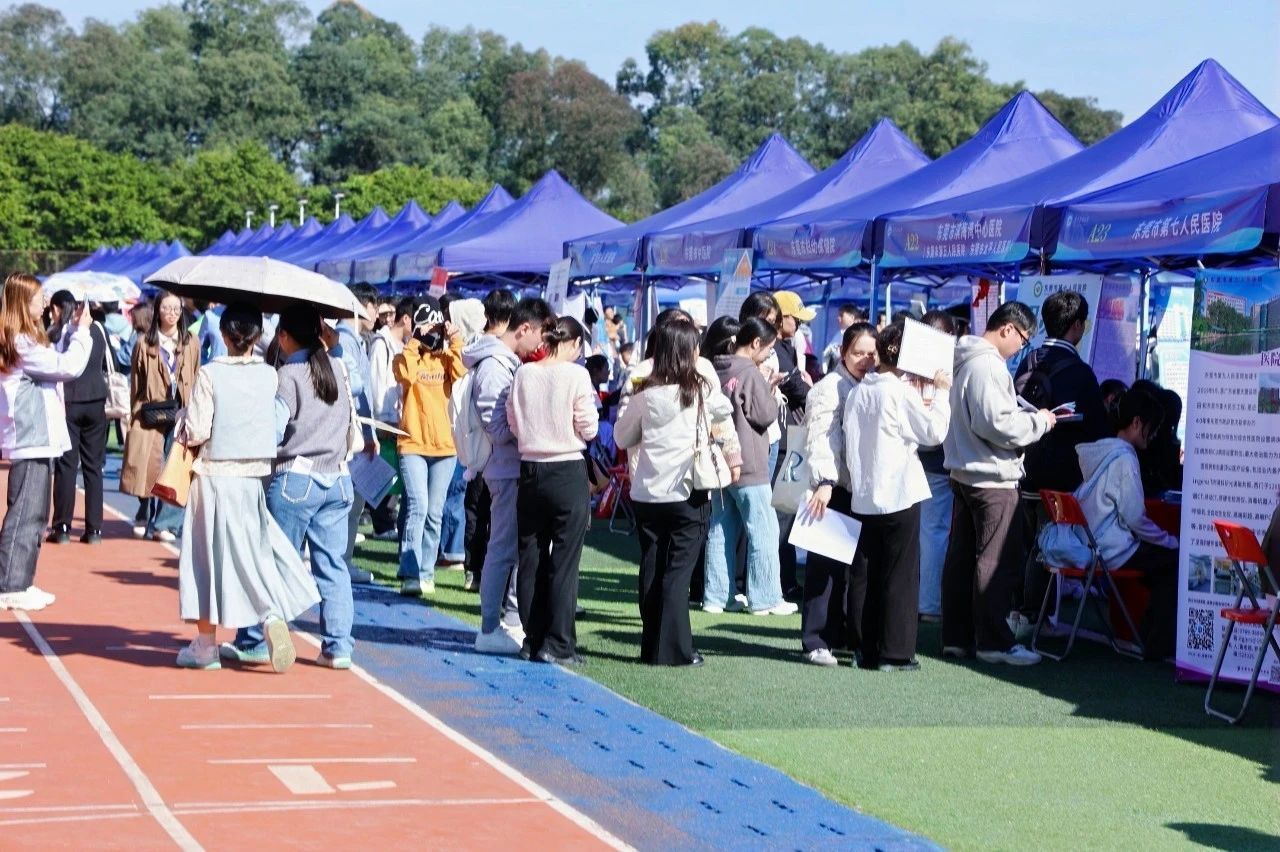 为切实做好2025届毕业生就业服务工作,11月30日,由广东省教育厅主办,新葡萄8883官网AMG、东莞市卫生健康局承办的广东省2025届普通高校毕业生系列供需对接活动——医学、药学、卫生管理类专场在新葡萄8883官网AMG东莞校区体育场举行。 本场对接活动汇聚了350余家用人单位,来自广州、深圳、珠海、东莞、佛山等地的卫健局、医院、社区卫生服务中心等多种类型的机构,它们与医学检验与诊断、医疗器械研发、医疗电子技术等多个领域的上市公司和优质企事业单位共同提供了丰富的就业资源,共计近2230个就业岗位,招聘人数超过1.18万余人。