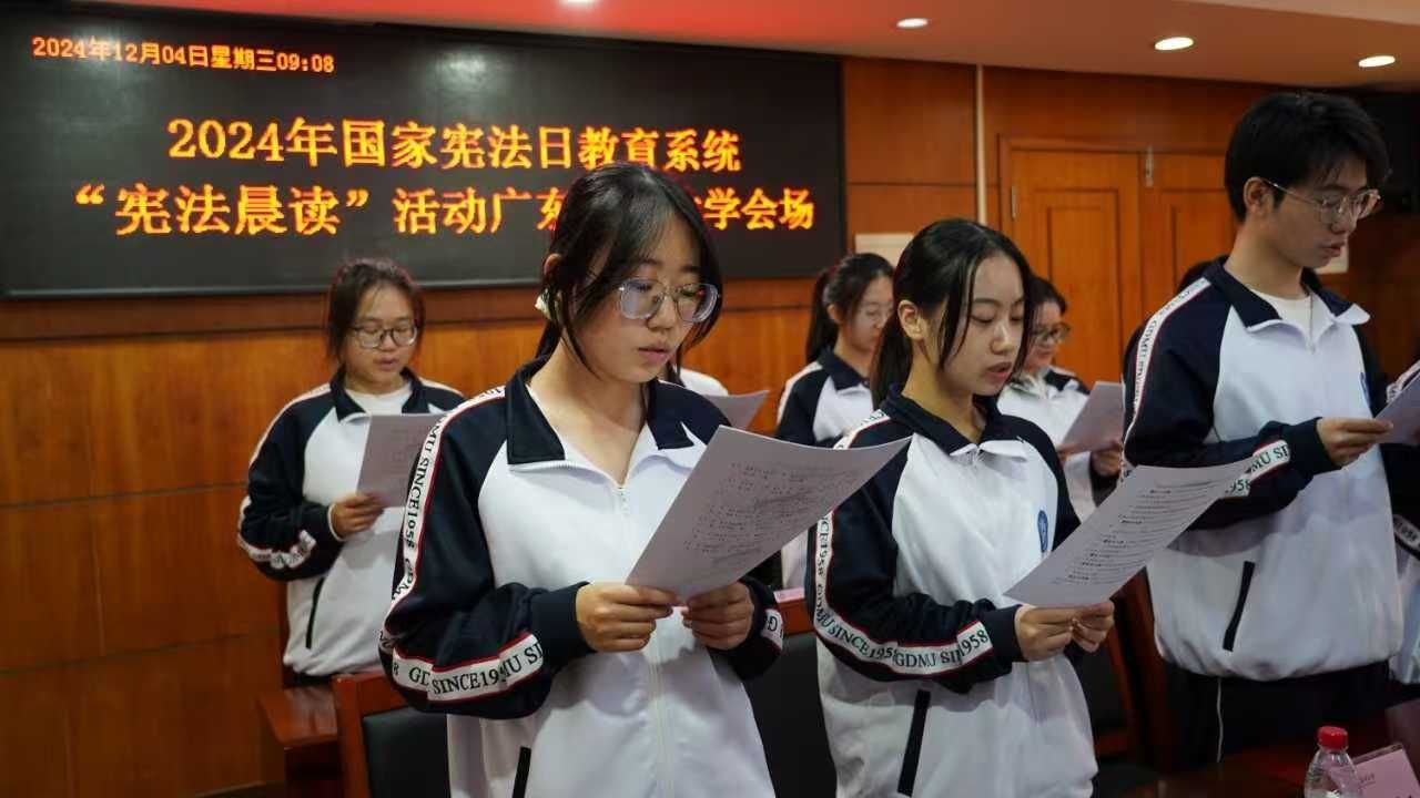 12月4日正值国家宪法日,教育部在北京设立主会场,广东省教育厅设立广东省分会场,新葡萄在两校区同步举办“宪法晨读”活动。校领导向献兵、刘新光,各基层党委(党总支部)书记、各学院院长,各职能部门负责人,学生代表参加活动。