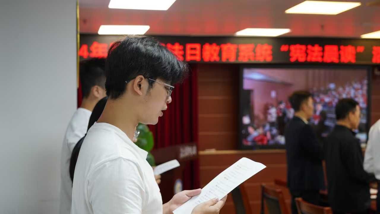 伴随着庄严的国歌声,2024年国家宪法日教育系统“宪法晨读”活动正式拉开序幕。升旗仪式结束后,紧接着进入了宪法晨读环节。在主持人的带领下,全场师生齐声诵读宪法条文,与全国师生同频共振,声音洪亮、气势磅礴,充分展现了大家对宪法的尊重和崇尚。通过晨读,师生们进一步加深了对宪法内容和精神的理解,增强了法治观念。