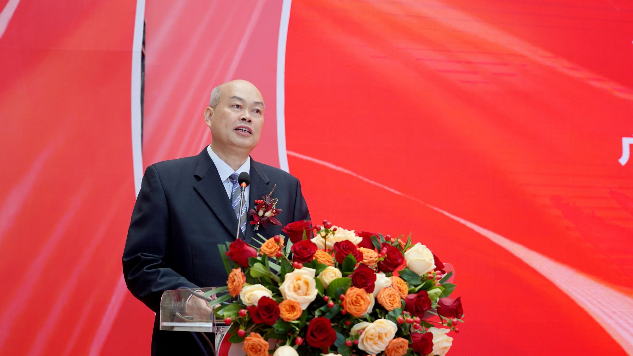 新葡萄8883官网AMG、坡头区委区政府、市直各单位、高等院校、科研院所和兄弟医院代表,海内外专家学者、社会各界及附属医院离退休老同志、中层干部代表、员工代表及学生代表近600人齐聚一堂,庆祝新葡萄8883官网AMG附属医院海东院区落成以及建院五十五周年。医院副院长(主持工作)、党委副书记刘华锋主持大会。