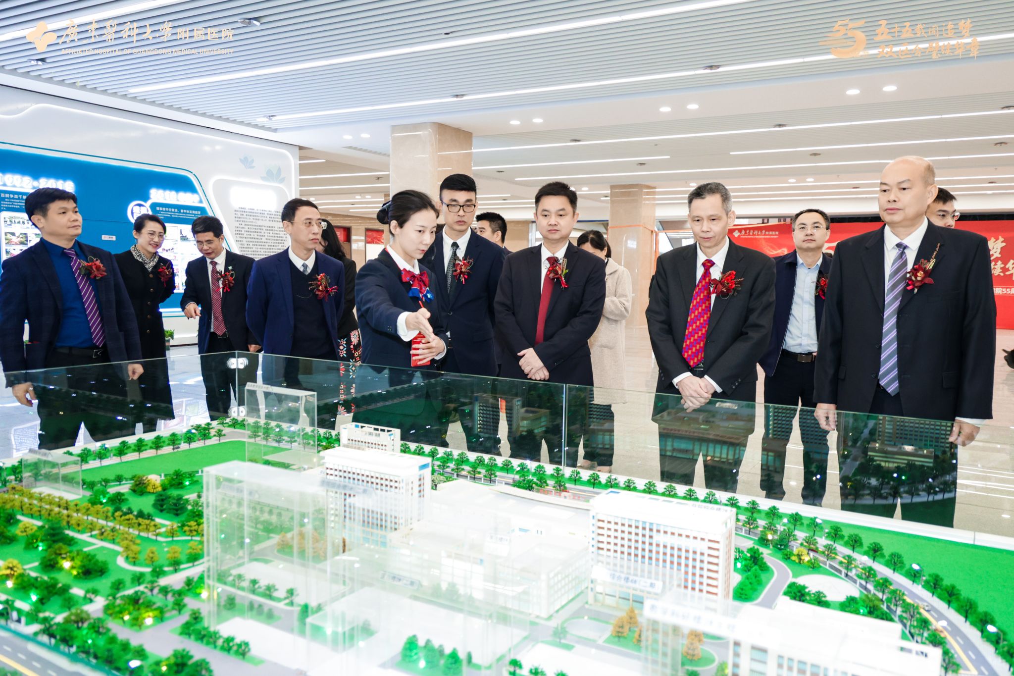 广东省卫生健康委员会二级巡视员巫小佳,湛江市人民政府副市长吴国雄,学校党委书记、校长卢景辉,广东省发展和改革委员会社会发展和就业收入分配处二级调研员赖伟齐,学校党委副书记黄达海,学校党委常委、副校长曾志嵘,坡头区委副书记、区长,湛江高新区党工委副书记、管委会主任黄哲辉,湛江市直机关工委书记、一级调研员黄真窦,湛江市卫生健康局党组书记、局长林兵,广东医附院党委书记蔡定彬等医院班子成员出席会议。