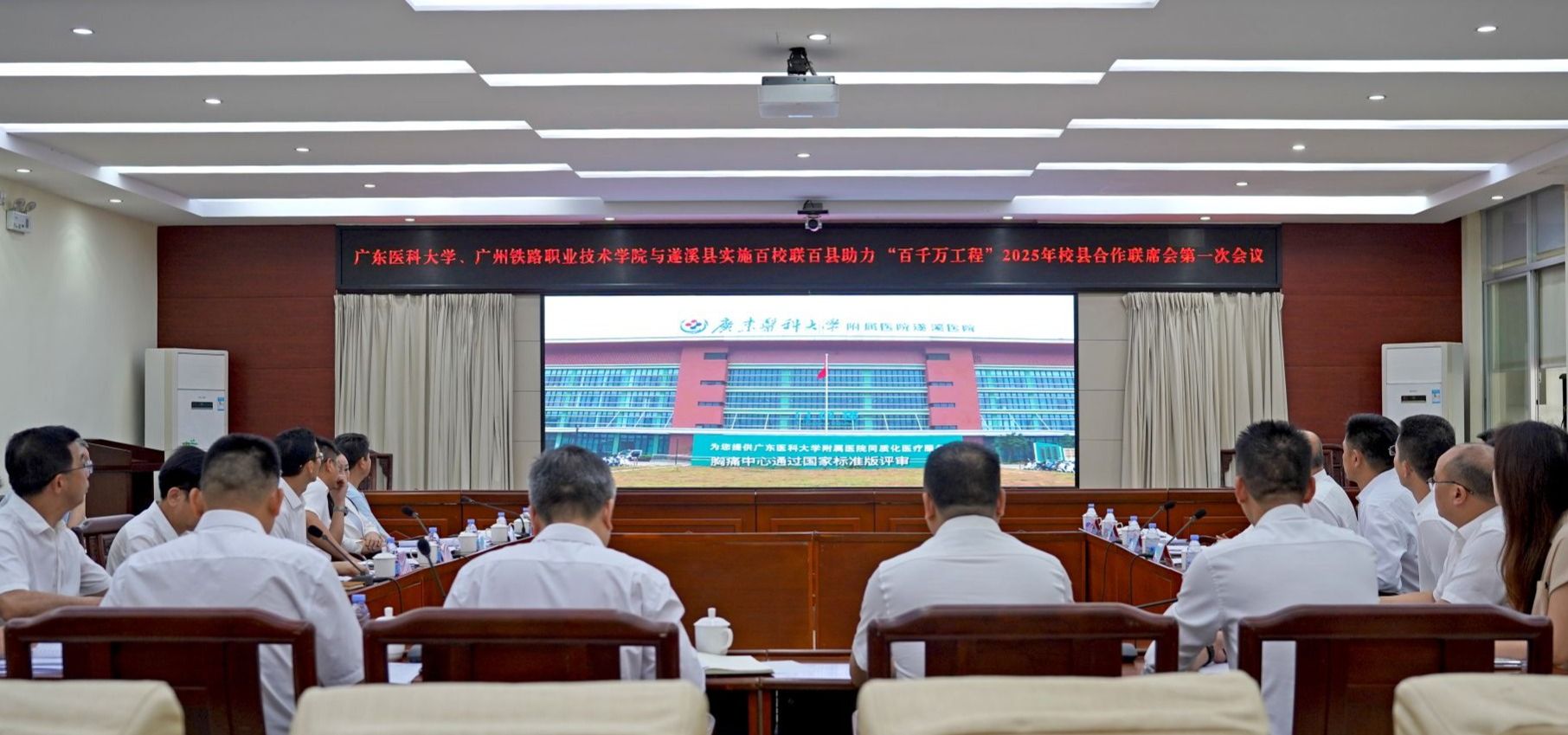 4月24日,新葡萄8883官网AMG、广州铁路职业技术学院与遂溪县“双百行动”2025年校县合作联席会第一次会议召开。三方围绕深化校地融合发展主题,全面总结三年校地合作 “初见成效”阶段性成果,聚焦县域高质量发展需求,推动“双百行动”向纵深发展。学校党委书记、校长卢景辉,广州铁路职业技术学院党委书记彭华国,遂溪县委书记骆华庆出席会议。