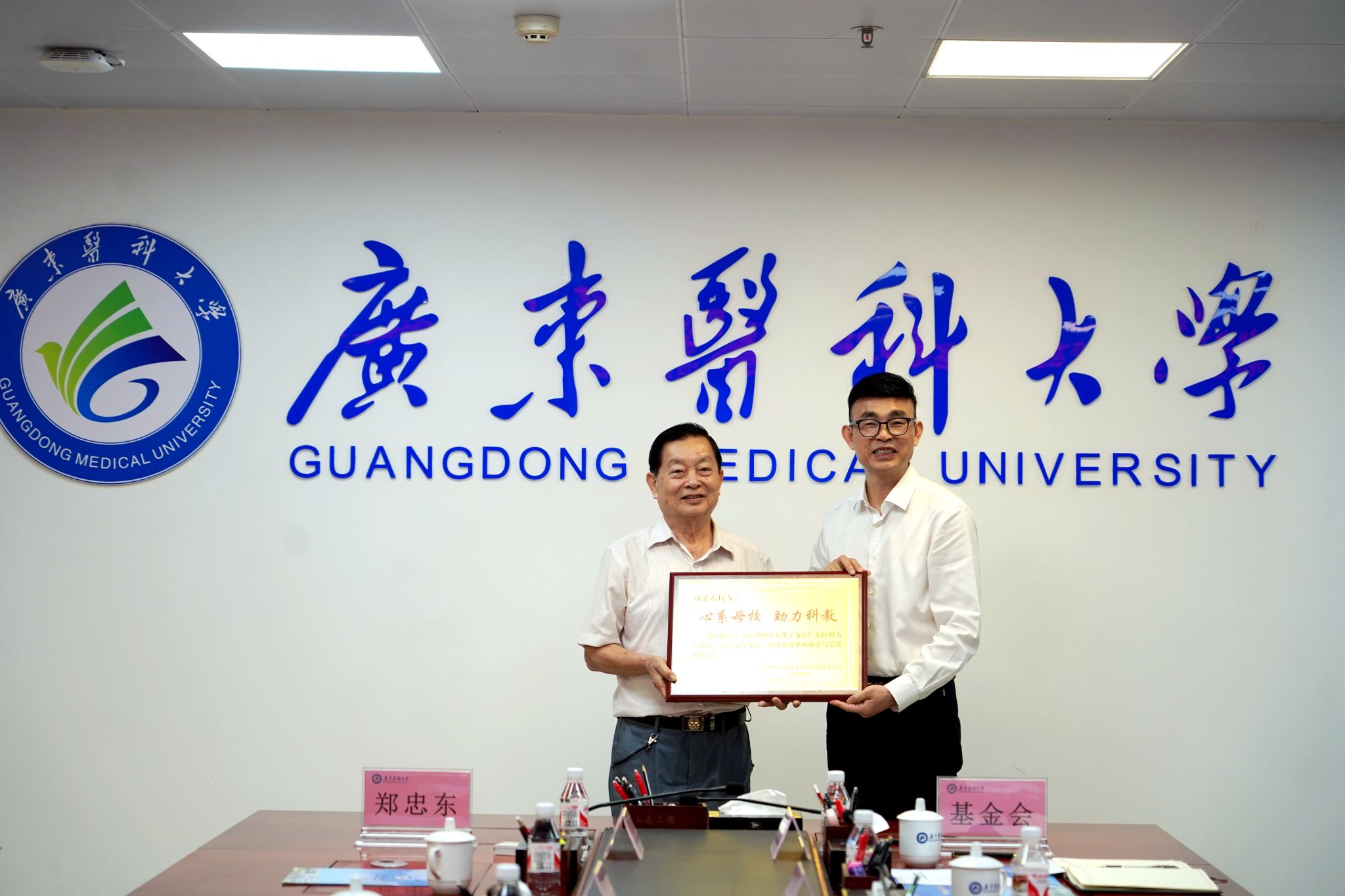 黄达海代表学校向郑忠东校友的慷慨捐赠致以诚挚谢意。他指出,在母校67周年校庆之际,郑忠东校友专程从海南返回湛江,捐赠30万元人民币支持教育事业,这一善举既是对母校的深情回馈,更是对“立志立德、求真求精”校训精神的生动践行。他强调,校友与社会捐赠是衡量大学办学实力的重要指标,新葡萄8883官网AMG67年来的发展离不开广大校友的鼎力支持。学校始终坚持“人才强校”战略,聚焦高质量医学人才培养,未来将以70周年校庆为契机,搭建更广阔的校友交流平台,汇聚各方资源推动科研与教学创新。他郑重承诺,学校将严格按照捐赠意愿,将善款专项用于人才培养与学科建设,确保校友的爱心转化为推动学校发展的实际成效。