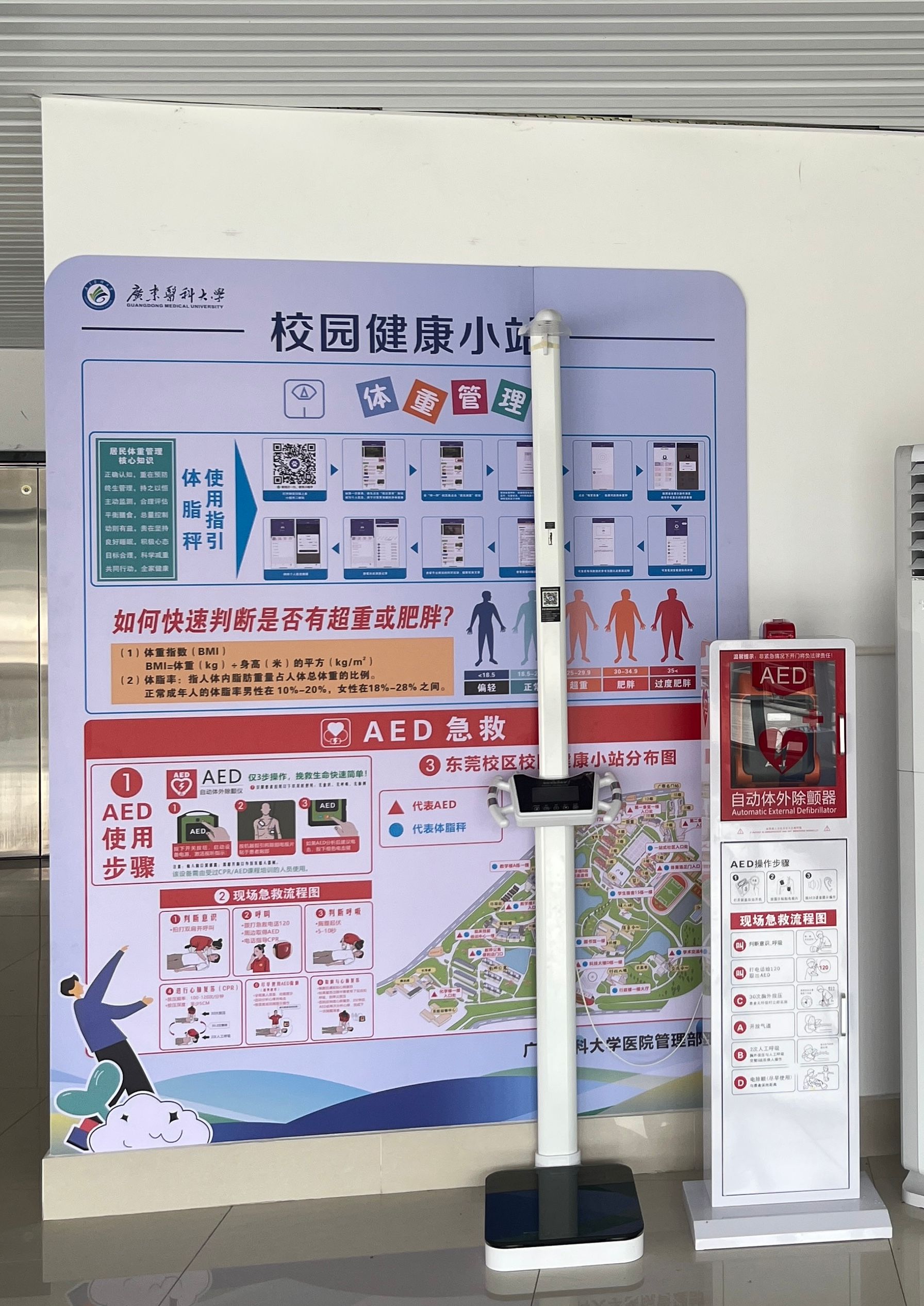 为深入贯彻国家“体重管理年”三年行动计划,推进“全国健康学校”与“全国急救教育试点学校”建设,6月16日,由医院管理部牵头建设的22个“校园健康小站”正式在两校区同步启用。小站集成智能健康监测、应急救护支持与健康知识普及功能,为师生提供“一站式”健康服务,助力科学体重管理与急救能力提升。
