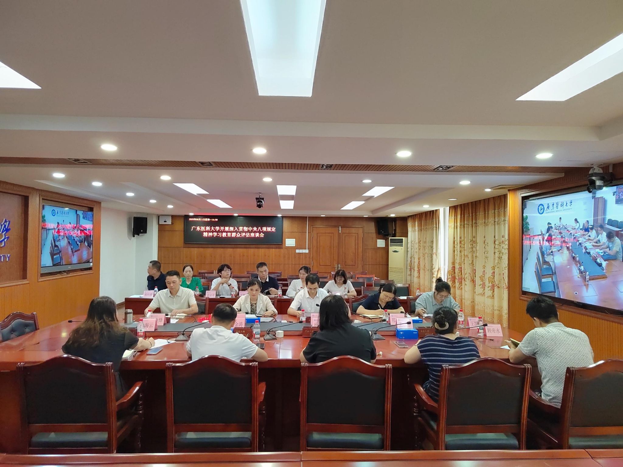 8月11日,学校召开深入贯彻中央八项规定精神学习教育群众评估座谈会,进一步盘点收获、总结经验、查漏补缺、改进提高,确保学习教育善始善终、善作善成。学校党委副书记黄达海主持会议并讲话。学校“两代表一委员”、党支部书记代表、普通党员代表、年轻干部、新提拔干部和关键岗位干部代表,教师代表、学生代表和学校学习教育专班成员参加会议。
