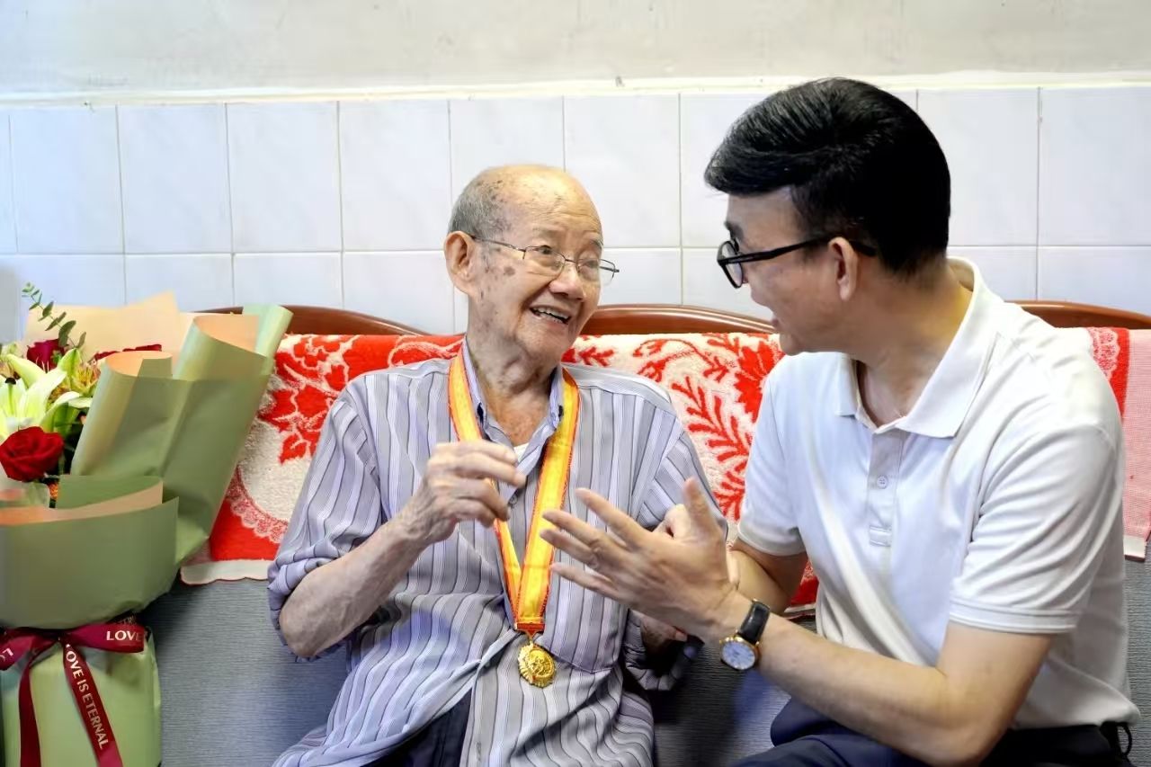 学校党委副书记黄达海带队亲切慰问罗老,为他佩戴上这枚沉甸甸的荣誉奖章。纪念章不仅是对罗老个人革命生涯的礼赞,更是一代人的精神丰碑,是国家从苦难走向辉煌的历史见证。