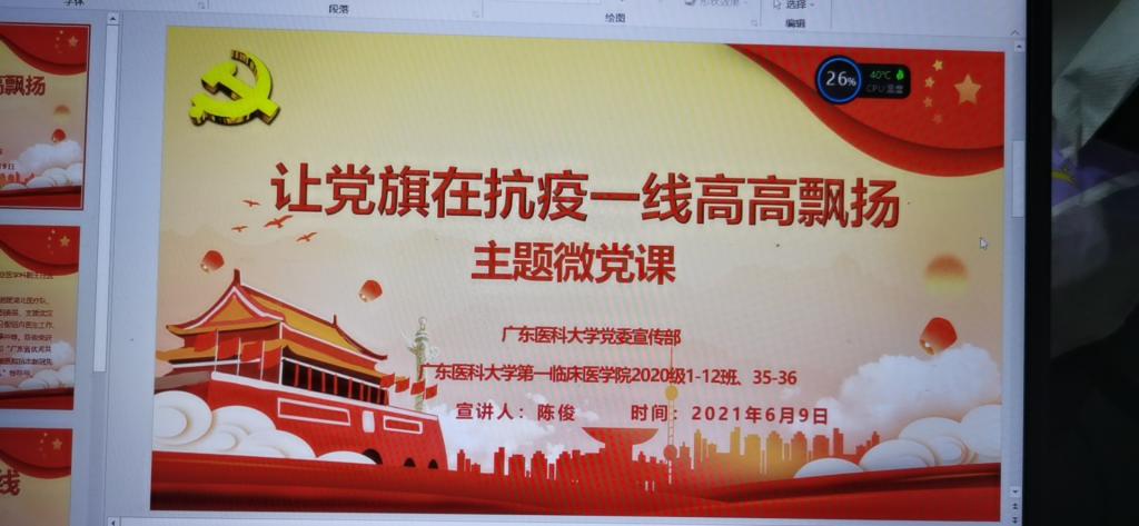 6月9日晚,一堂来自吴川抗疫一线的“云”党课上,新葡萄8883官网AMG第一临床医学院2020级的学生们踊跃发言提问。此次微党课是由新葡萄8883官网AMG第一临床医学院2020级1-12、35-36班和党委宣传部党支部、知行青春工作室联合举办的《让党旗在抗疫第一线高高飘扬》主题党日活动,特别连线身在吴川抗疫一线的新葡萄8883官网AMG附属第二医院医师重症医学科副主任医师、校友陈俊主讲微党课。