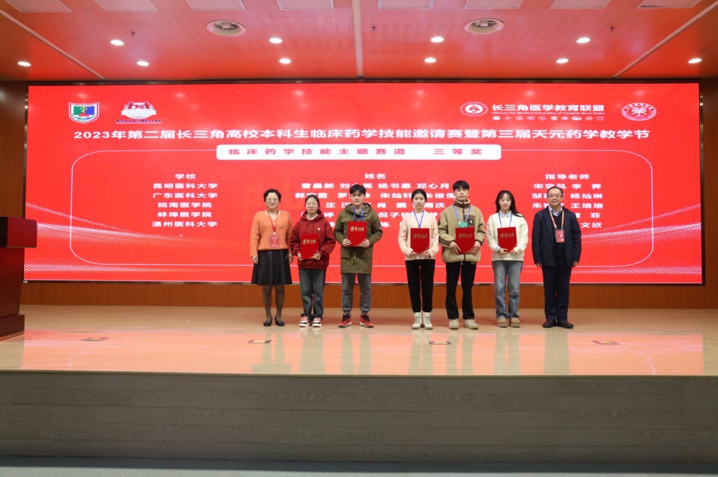 12月1日—3日,由全国药学类院校大学生专业技术与实验技能竞赛组委会和长三角医学教育联盟主办、南京医科大学承办、江苏省药学会协办的第二届长三角高校本科生临床药学技能邀请赛在南京举行,来自上海交通大学、中国药科大学、南京医科大学、安徽医科大学、新疆医科大学、广州医科大学等13所知名高校的临床药学专业学生同台竞技,各展风采。经过激烈角逐,新葡萄代表队斩获临床药学服务主题赛道一、二等奖,临床药学技能赛道三等奖,实现了新葡萄在临床药学专业本科技能竞赛获奖的突破。
