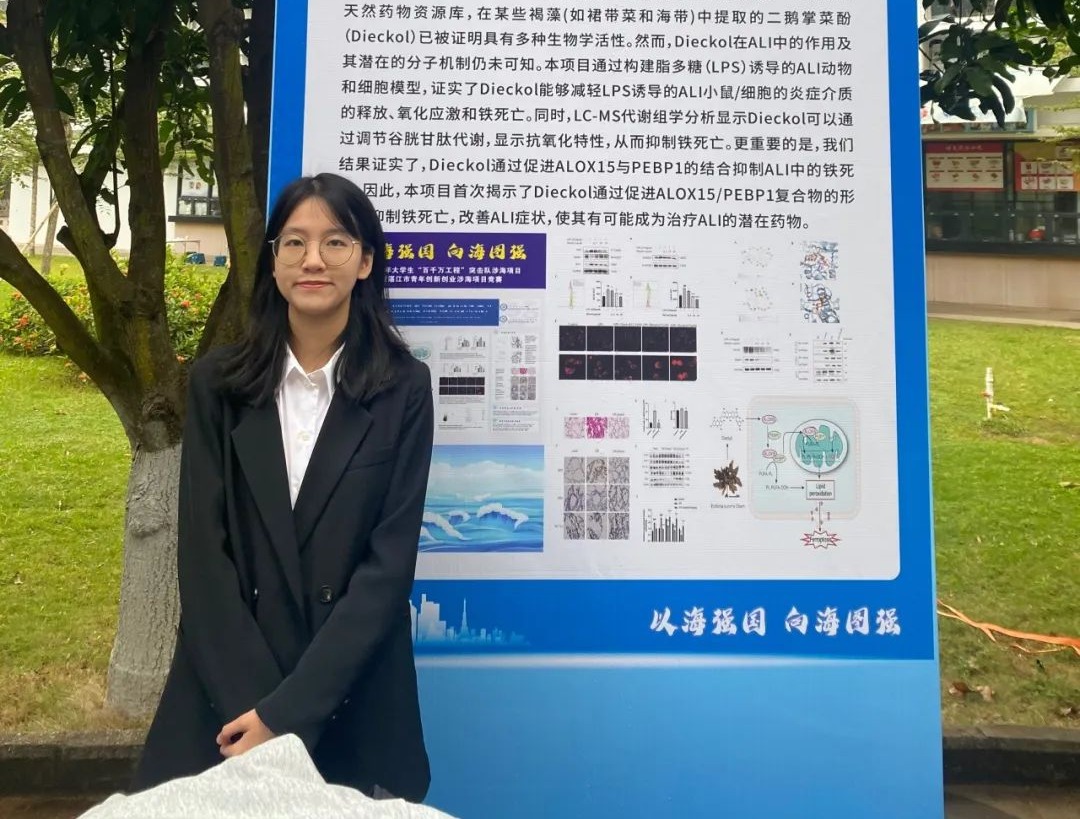 科研路并不平坦,秦静潼也常常会有挫败的时刻。这时候,她就会转移注意力,“先恢复良好的精神状态再攻克难题”。对她来说,这不仅是她在科研路上总能保持良好心态的关键,同时也是保持学习热情的一大原因。正因此,她的项目《ALOX15/PEBP1介导的铁死亡在哮喘中的作用和机制研究》获省级立项,也是湛江校区唯一的重点项目。同时她在2022年挑战杯,第九届全国基础实验论坛设计大赛,临床技能大赛等多项重要科研比赛中皆获佳绩。