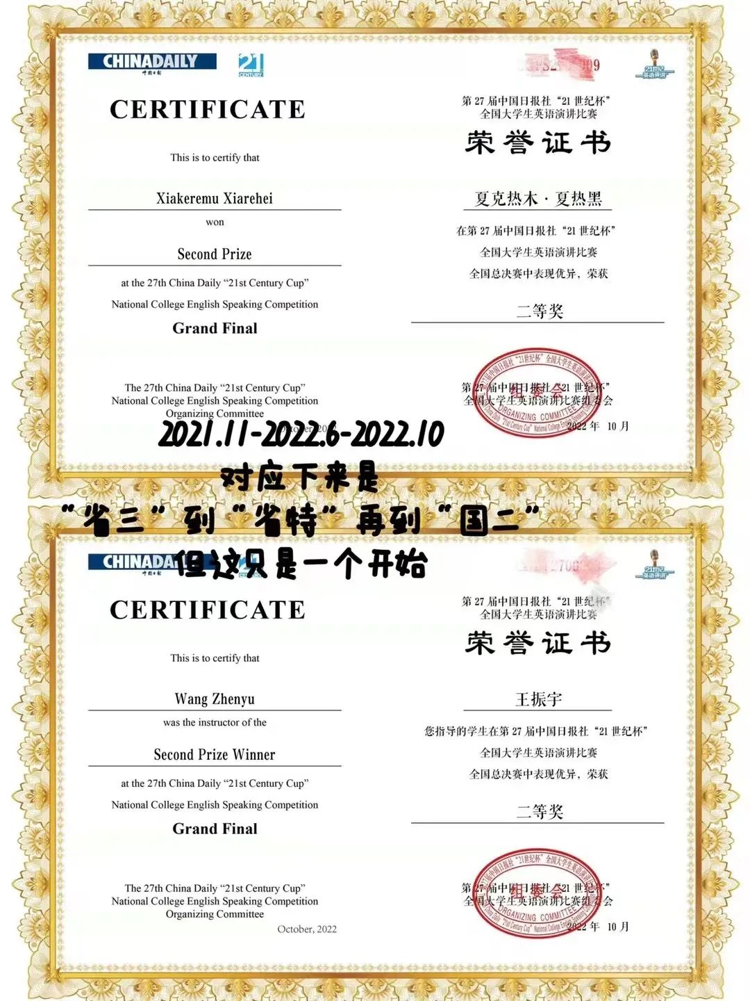 出色的表现来源于平时的练习和积累。此前的2021年,在“爱在广东”民族团结进步教育活动主题演讲中,夏克热木就凭借出色的表演获得“一等奖”的好成绩。