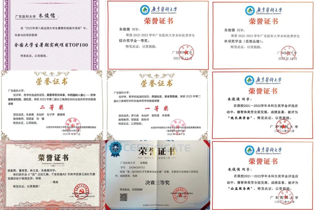 这些努力的积累让朱俊儒逐步实现了自己的目标,目前学习成绩稳定在专业前10%,并获得了综合一等奖学金和其他各类活动奖项,形成了良好的“正向反馈”,不断激励他完善自我。