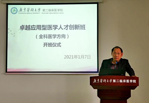 1月7日上午,新葡萄8883官网AMG第二临床医学院卓越应用型医学人才创新班(全科医学方向)开班仪式暨全科医学专题讲座在学院115会议室举行。东莞市寮步社区卫生服务中心汤松涛主任,丁森华副主任,第二临床医学院官成浓院长,陈珊书记,迟宏罡副院长,丁喜生副书记和创新班的校内导师以及全体学员参加了本次开班仪式。