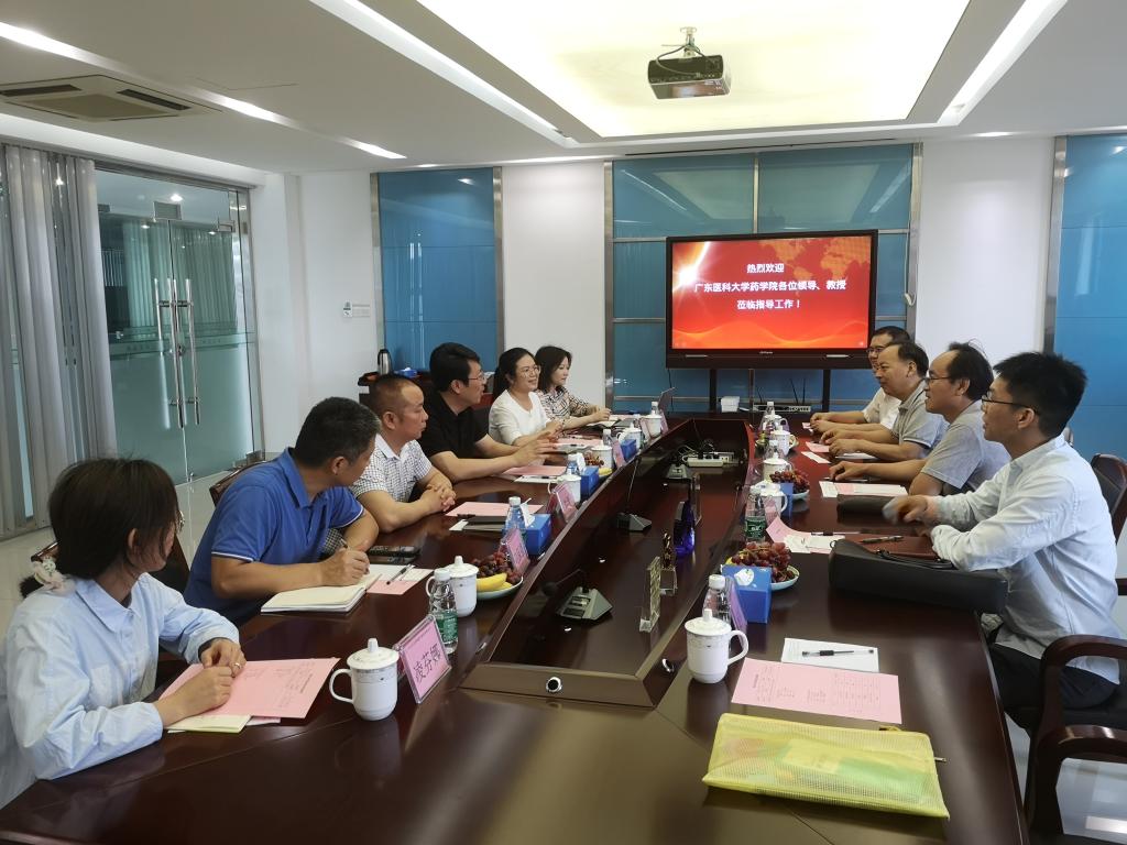 为拓宽学院产学研合作发展新途径,探讨联合培养机制,促进学生实习就业,5月11日上午,药学院鲁澄宇院长率队赴中山百灵生物技术股份有限公司考察洽谈,学院办公室杨军主任、赵文昌教授、周郁斌副教授、杨懋勋副教授陪同前往。