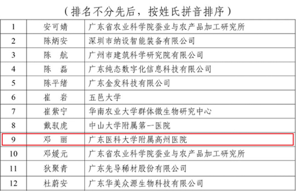 近日,广东省博士博士后人才发展促进会正式公布了“2020年度广东省百名博士博士后创新人物候选人”名单。据统计,全省共500多名博士博士后人员申报,最终遴选100名。其中,新葡萄8883官网AMG附属高州医院邓丽博士后成功入选,属于学校博士后科研工作站建站以来首个获得该殊荣。