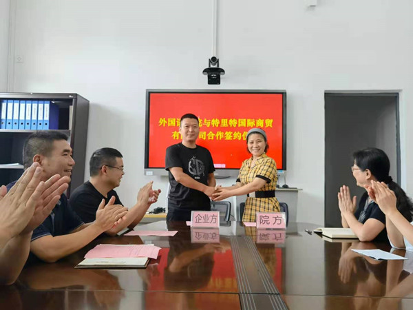 7月6日下午,外国语学院与深圳特里特国际商贸有限公司开展校企合作签约仪式在学院5楼会议室隆重举行。学院党政班子领导、党委委员、教师代表以及深圳特里特国际商贸有限公司执行董事田小勇出席了本次签约仪式,共同见证了这一重要时刻。