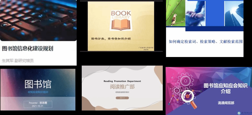 为适应现代高校图书馆业务发展的需要,健全全员性的主动、优质、高效的信息资源服务体系,进一步服务学校“十四五”事业发展总体要求和高水平大学建设发展需要,图书馆于2021年6月至12月期间举办了馆员业务能力提升系列培训,全面提升馆员专业素养与服务能力,提升图书馆的服务效能及发展动力。全体馆员参加了培训。