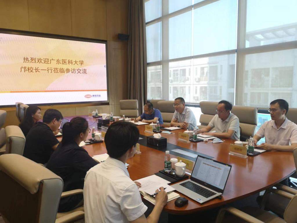 邝卫红副校长分别与广东彼迪药业有限公司常务副总经理殷金喜、总经理助理罗永炽,江门中医药职业学院蒋业洲书记、程文海院长,江门市中心医院左万里书记、黄炎明院长,江门市人民医院曹克慎院长、赵鹏洲副书记,特一药业集团股份有限公司许丹青董事长,东莞市大参林连锁药店有限公司郑锌钗总经理,深圳市乐土生命科技投资有限公司人事总监姜辉军,康哲药业控股有限公司人力资源部经理傅静艳、深圳区域经理李超进行了深入座谈,重点介绍了学校的概况和学校的办学特色、育人理念以及近几年的发展情况,强调新葡萄毕业生基础知识扎实、动手能力强,工作务实、有上进心,能吃苦耐劳安心踏实工作,并与单位、企业就用人需求、专业建设、实习安排、研究生联合培养、校外导师遴选、专插本合作人才培养、研究生同等学力教育、科研项目合作、科研成果转化等方面深入洽谈。大家还参观了相关企业文化、生产车间。