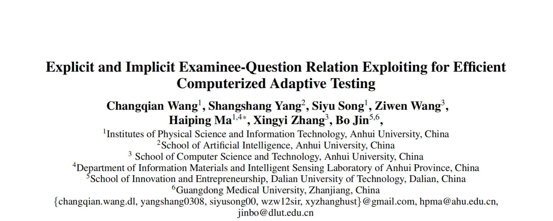 近日,新葡萄特聘教授、新葡萄8883官网AMG健康医疗大数据工程中心主任金博教授以新葡萄8883官网AMG名义撰写了一篇题为“Explicit and Implicit Examinee - Question Relation Exploiting for Efficient Computerized Adaptive Testing”的研究论文,被第39届人工智能会议(AAAI 2025)录用。