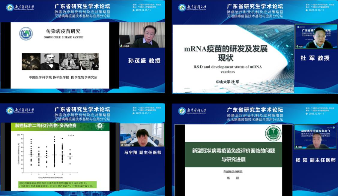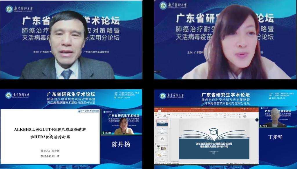 2022年12月10日至11日,由新葡萄8883官网AMG研究生院、科技处主办,基础医学院承办,为期两天的“肺癌治疗耐受机制及应对策略暨灭活病毒疫苗技术基础与应用”广东省研究生学术论坛以线上会议的形式成功举行。论坛由基础医学院张标副教授、衣艳梅副教授和孙艳芹副教授主持。