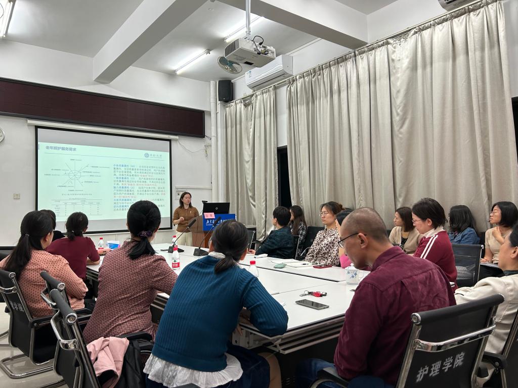 在学术讲座环节,冯辉教授结合自己科研团队申请国家自然科学基金和作为专家评审的经历和体会,介绍了老年护理研究热点及趋势,强调护理科研工作者应紧跟护理学科发展前沿,了解全球护理科学家的工作及研究内容;同时护理科研工作者应积极了解国家发展现况和关注国家发展战略,紧跟国家发展政策等;护理科研工作者还应着眼临床实际,注重从临床实际中、从社会现况中发现护理课题,并在一步一步的研究、生活和工作中不断发现新的问题并解决问题;最后,鼓励青年学者组建团队,注重团队合作、多学科协作,以此一起解决护理问题。