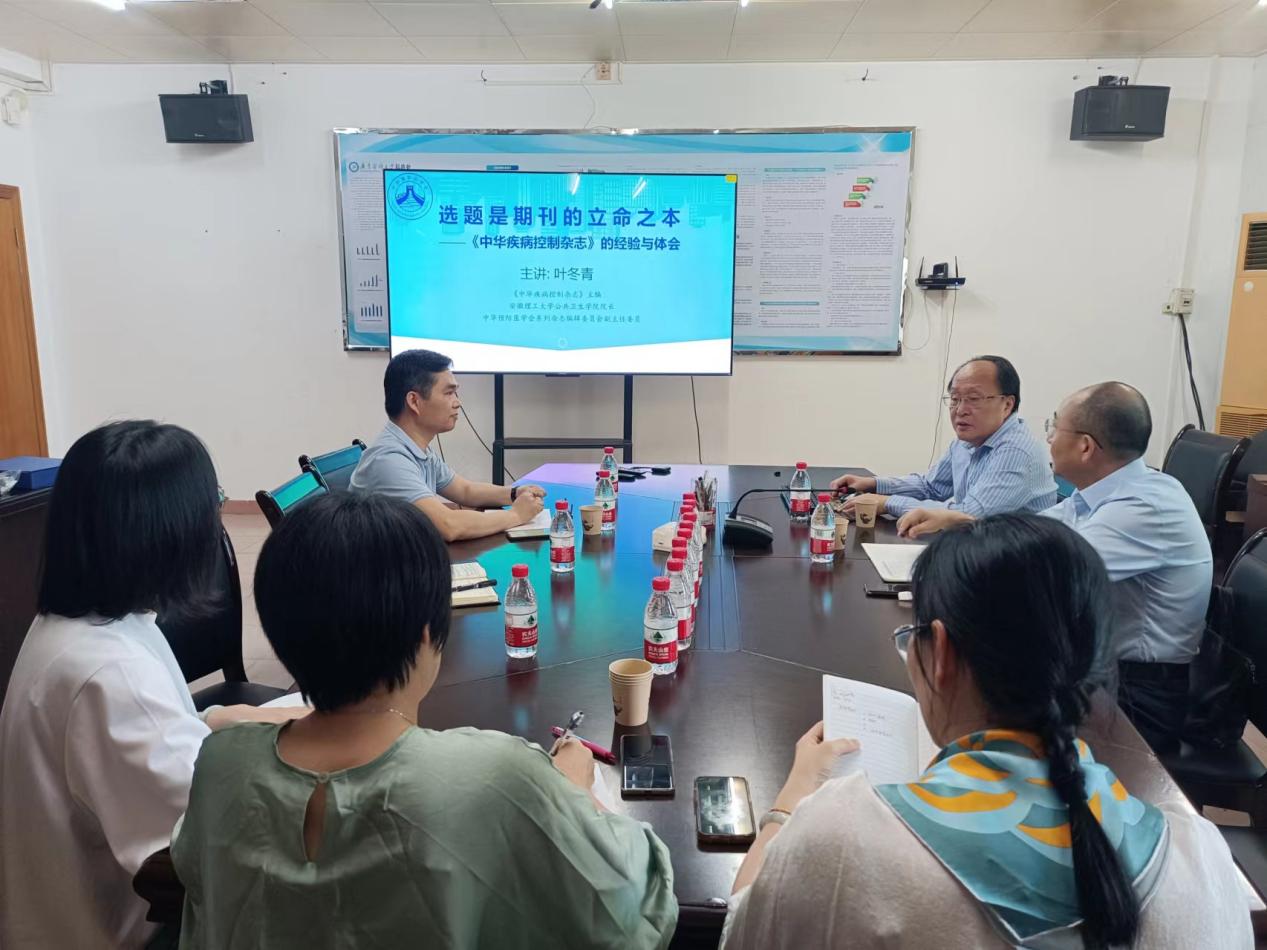 为提升《新葡萄8883官网AMG学报》的质量和影响力,2024年5月7日,《中华疾病控制杂志》主编叶冬青教授应邀来校,在新葡萄研究生院倪进东院长的陪同下,与《新葡萄8883官网AMG学报》编辑部全体工作人员进行学术交流与办刊经验分享。