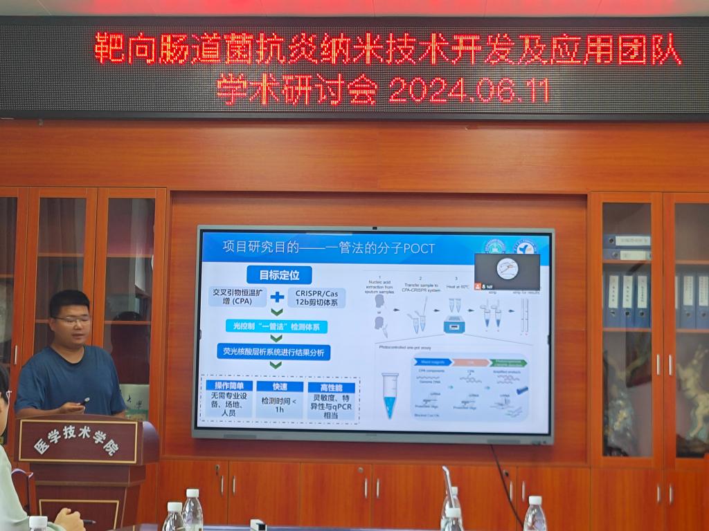 “靶向肠道菌抗炎纳米技术开发及应用团队”成员陈玲铭博士和张鹏飞博士分别做了题为“肠道菌干预的抗结核治疗策略”和“基于CRISPR CAS12b的分子POCT”的学术报告,陈玲铭博士和张鹏飞博士系统介绍了团队在结核病病损机理、微生物检测和感染性疾病诊断的研究工作和进展。